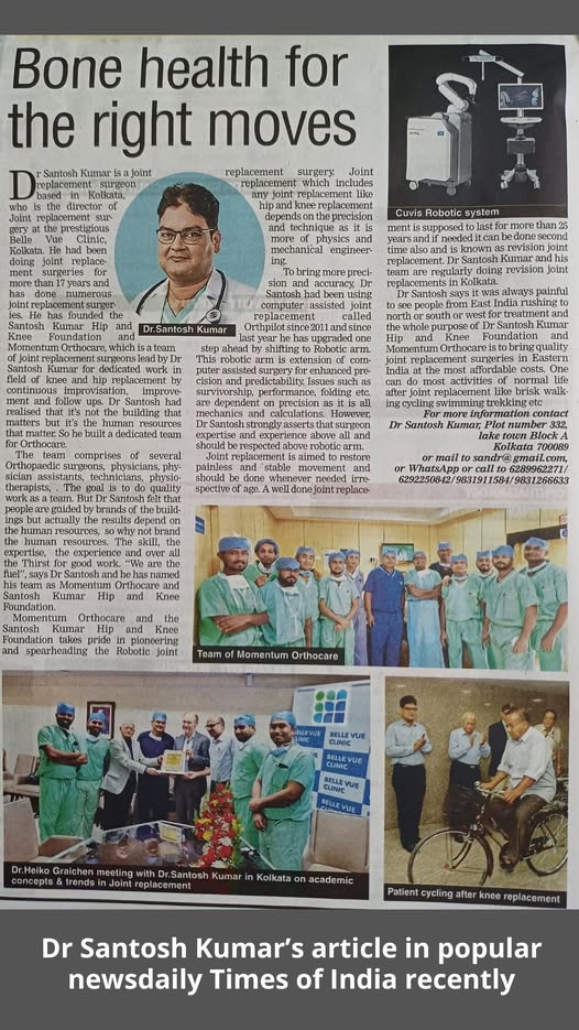 Dr. Santosh Kumar, a leading joint replacement surgeon in Kolkata, performs advanced robotic knee replacement surgery using state-of-the-art robotic technology. This technique ensures exceptional precision in implant placement, resulting in better alignment and faster recovery. Patients experience minimal pain, reduced blood loss, and quicker return to normal activities. Dr. Kumar’s expertise has made Kolkata a key destination for world-class robotic joint replacement care. ...more