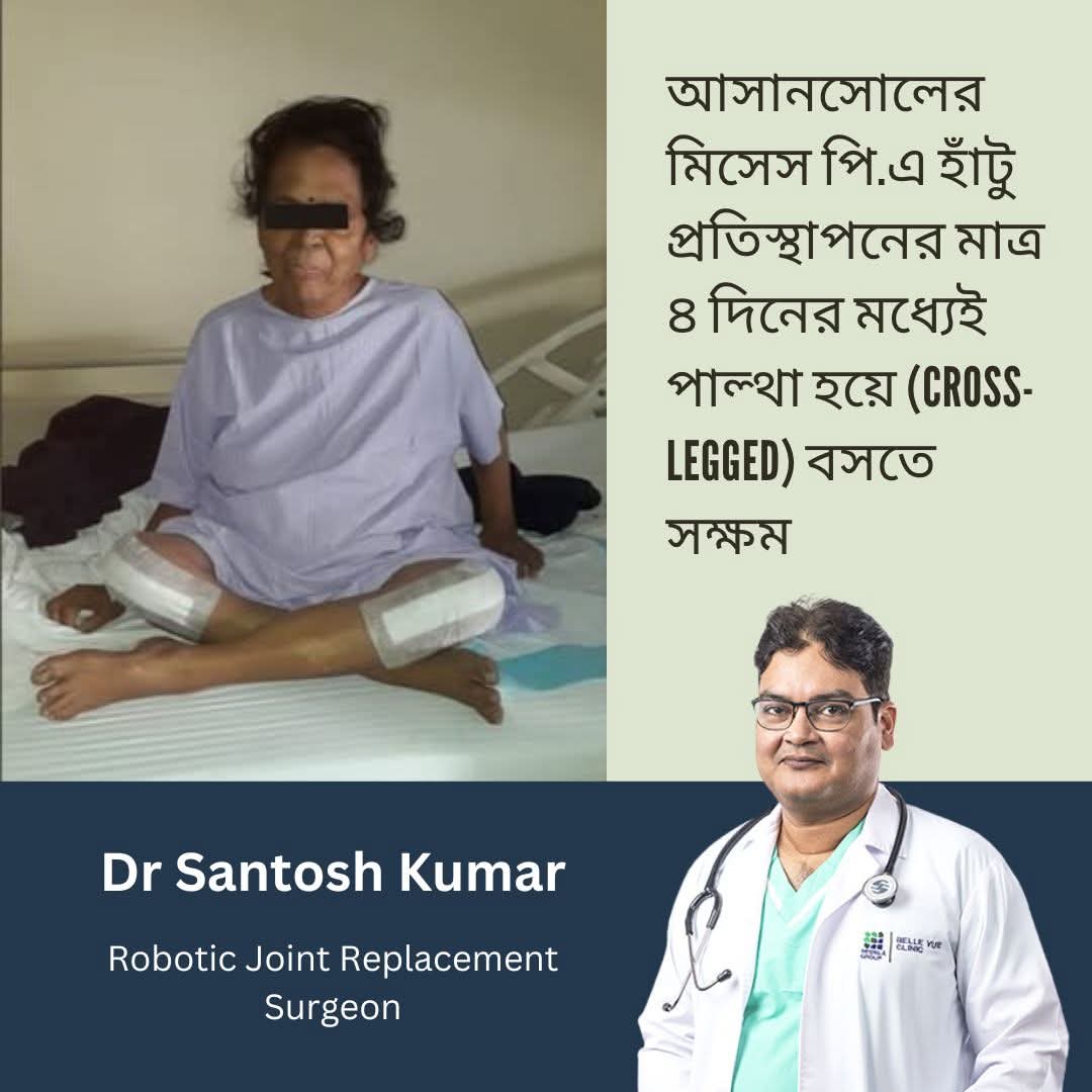 "The patient from Bangur Avenue, Kolkata who underwent both knee replacement from Dr. Santosh Kumar, sitting cross legged 7 days after the surgery and just 2 days after discharge from hospital".
