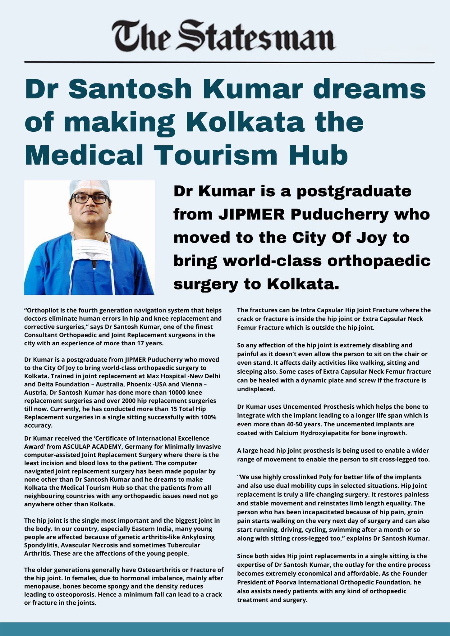 He was educated in one of the most prestigious medical schools, recognized all over the globe, the Jawaharlal Institute of Post Graduate Medical Education and Research (JIPMER), under the government of India, both his graduation and post graduation. Dr Santosh Kumar successfully completed MCh in Orthopaedic surgery specializing in different orthopaedic procedures.
