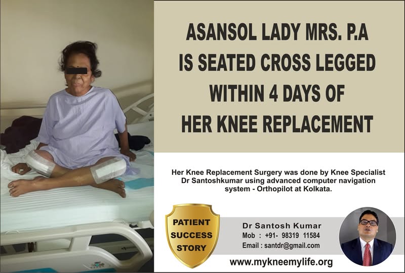 "The patient from Bangur Avenue, Kolkata who underwent both knee replacement from Dr. Santosh Kumar, sitting cross legged 7 days after the surgery and just 2 days after discharge from hospital".