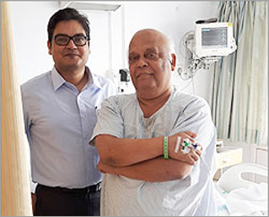 "Waking up to a new morning with new hope. Restoring the joy of movement . The patient is seen standing here with Dr. Santosh Kumar, the next morning after the day of knee replacement surgery".