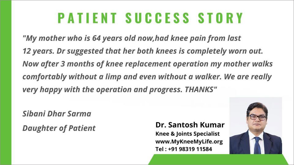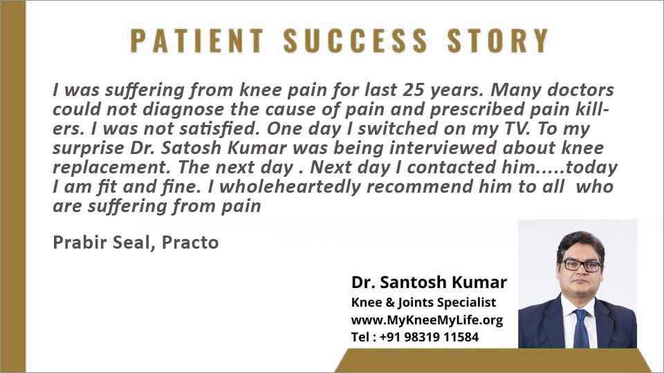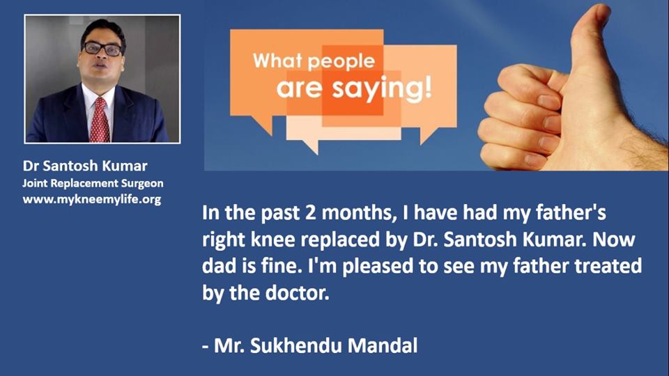 "I had been suffering from knee pain for last one year. It was difficult to walk. I heard of Dr. Santosh Kumar from my friend and got my knee operated. I now can walk. My friend too is well now. Thanks to Dr. Kumar".