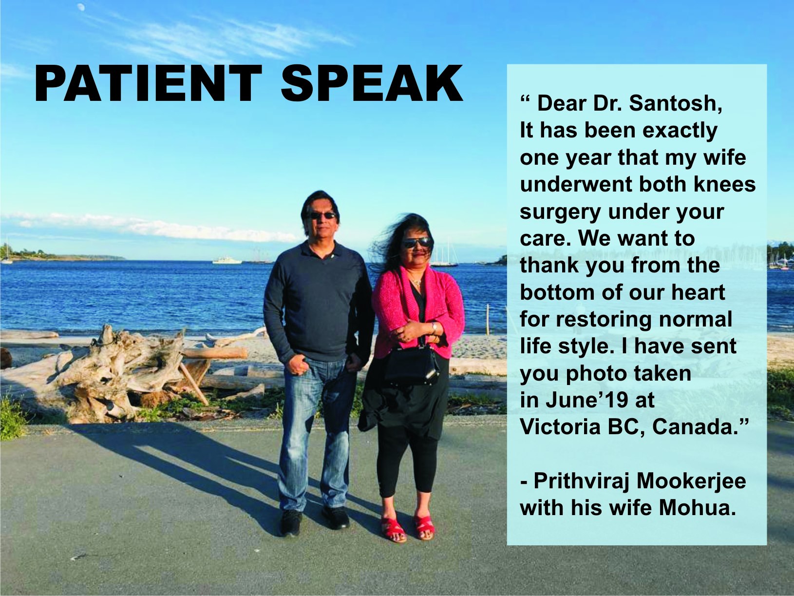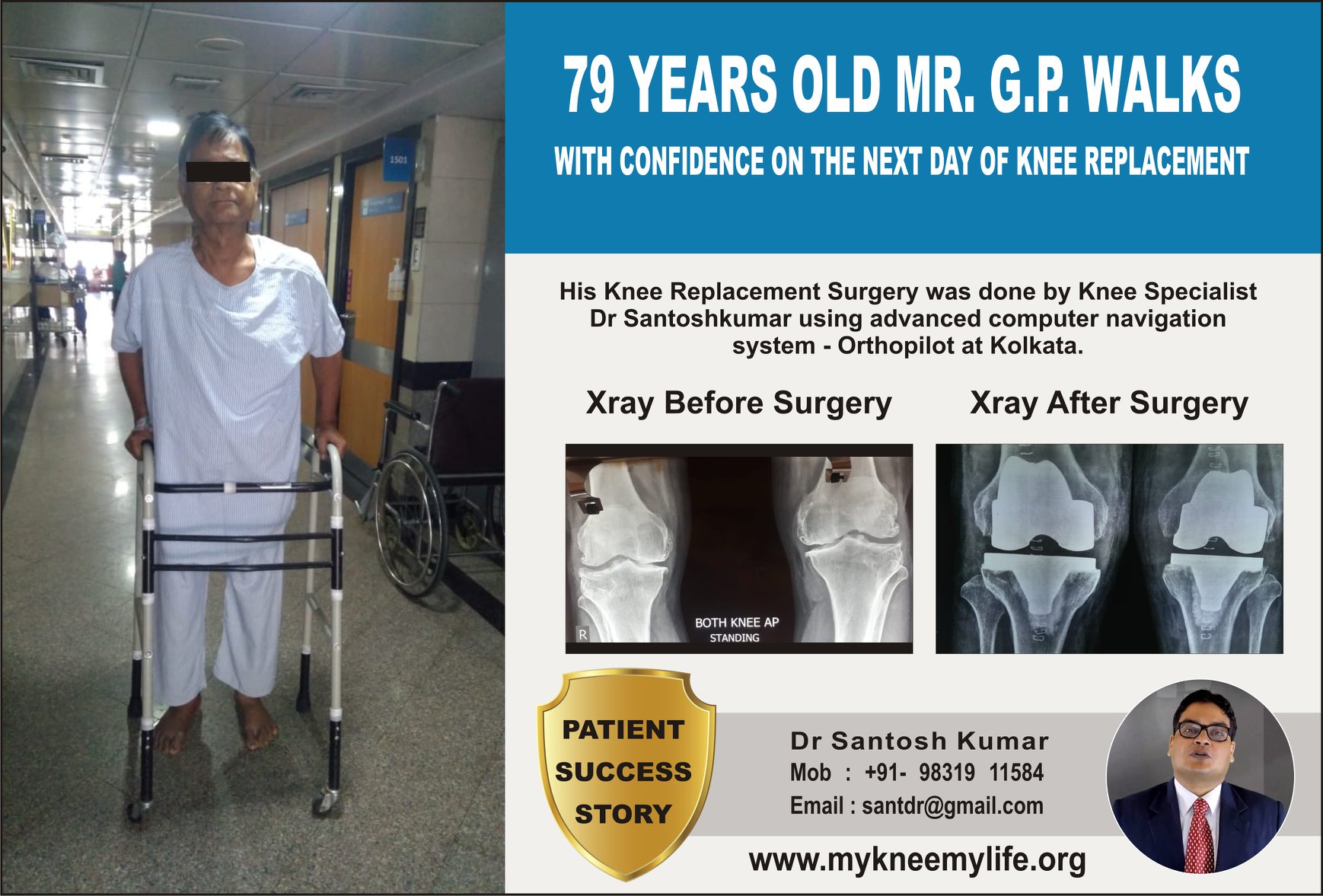 Had never imagined will be able to go to shopping and walk again till both my knees were replaced by Dr Santosh Kumar.